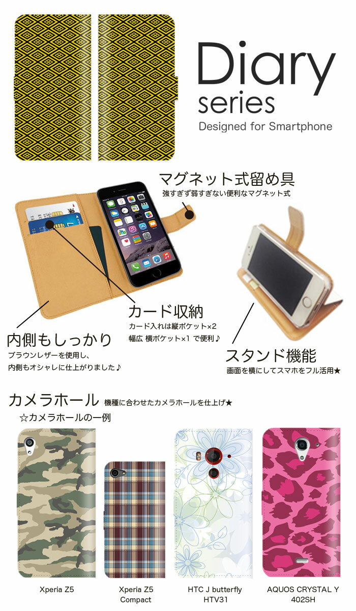 Xperia X Performance 手帳 ケース SOV33 手帳型ケース 手帳型カバー オススメ エクスペリアエックスパフォーマンス スマホケース レザー au 総柄 和柄 日本柄 japan ひし形 オレンジ 木目 柄物 襷文様 襷格子 斜め格子 たすき(襷・手繦) 平行四辺形 (L)