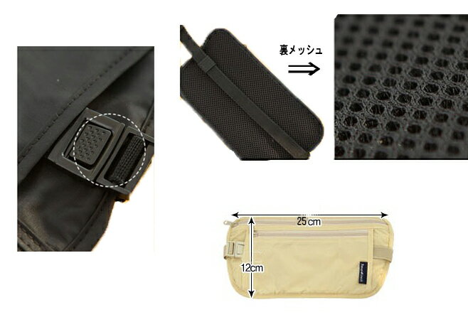 【メール便・郵便送料無料】簡単クリップ脱着ゴムベルト式シークレットベルト ボディフィットウエストポーチ 腰巻きタイプの貴重品入れ 旅行に大活躍の腰ベルト 旅行用品 トラベルポーチ 隠しポケット マネーベルト セキュリティケース 海外旅行便利グッズ