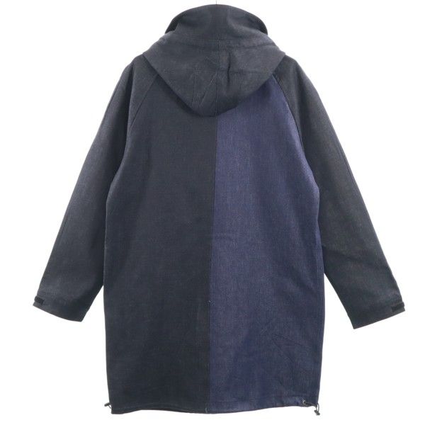 新品 HB ビッグフード シルキー デニム モッズコート M エイチビー ロングコート デニムジャケットインディゴブルー×ブラック メンズ 【200227】 【Pdown】