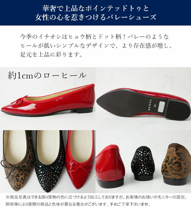 【P最大44倍】【送料無料】リーガル レディース REGAL フラットシューズ リボン 本革 レザー F39K バレエシューズ ポインテッドトゥ 赤 レッド 黒 ブラック ブラウン ヒョウ柄 豹柄 ドット メタリック エナメル evid