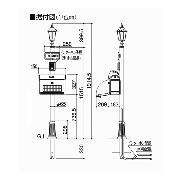 基本内容 説明 ヨーロッパの街路灯をイメージさせるポールタイプの機能門柱 『ブルーム門柱』M3型、照明・表札・ポスト付 インターホンは含まれておりません。